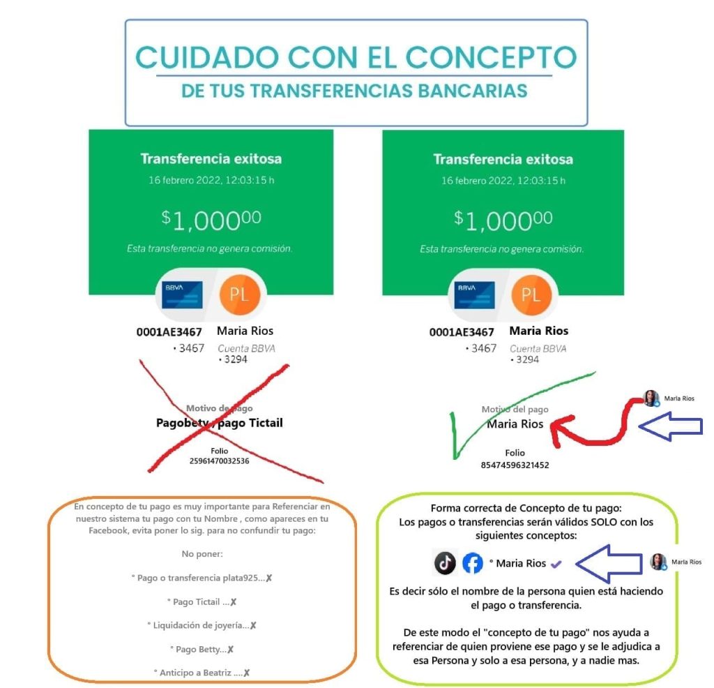 - Importante:Al realizar el pago en ventanilla, indica que es un «abono a cuenta» o «depósito a cuenta», no un «envío de dinero». Esto es debido a las leyes mexicanas contra el lavado de dinero. Solo se aceptan depositos y transferencias. No se aceptan envios de dinero posfechados.